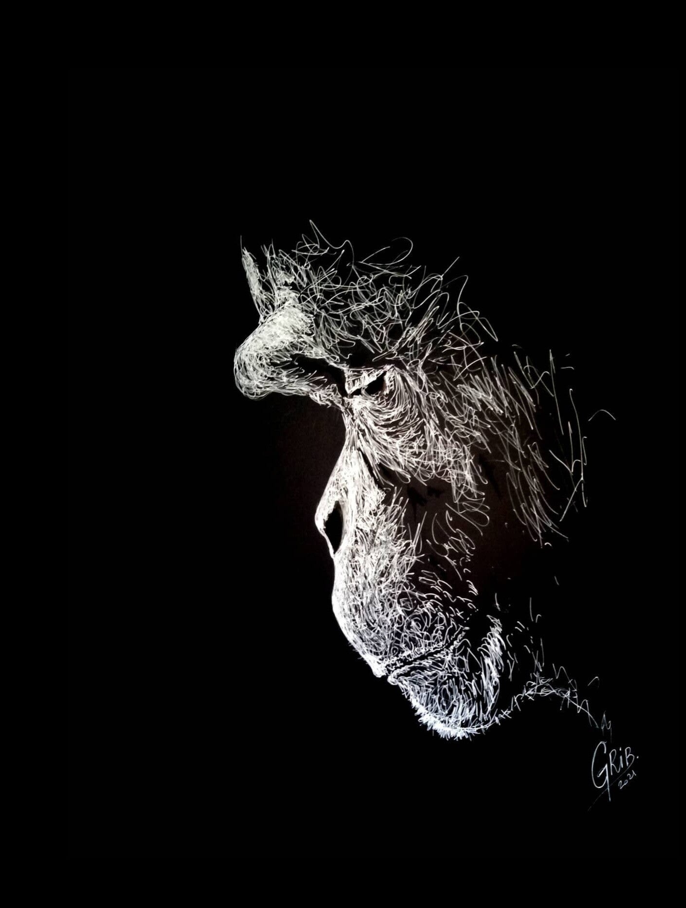 Oeuvre réalisée au stylo à encre blanc sur noir.