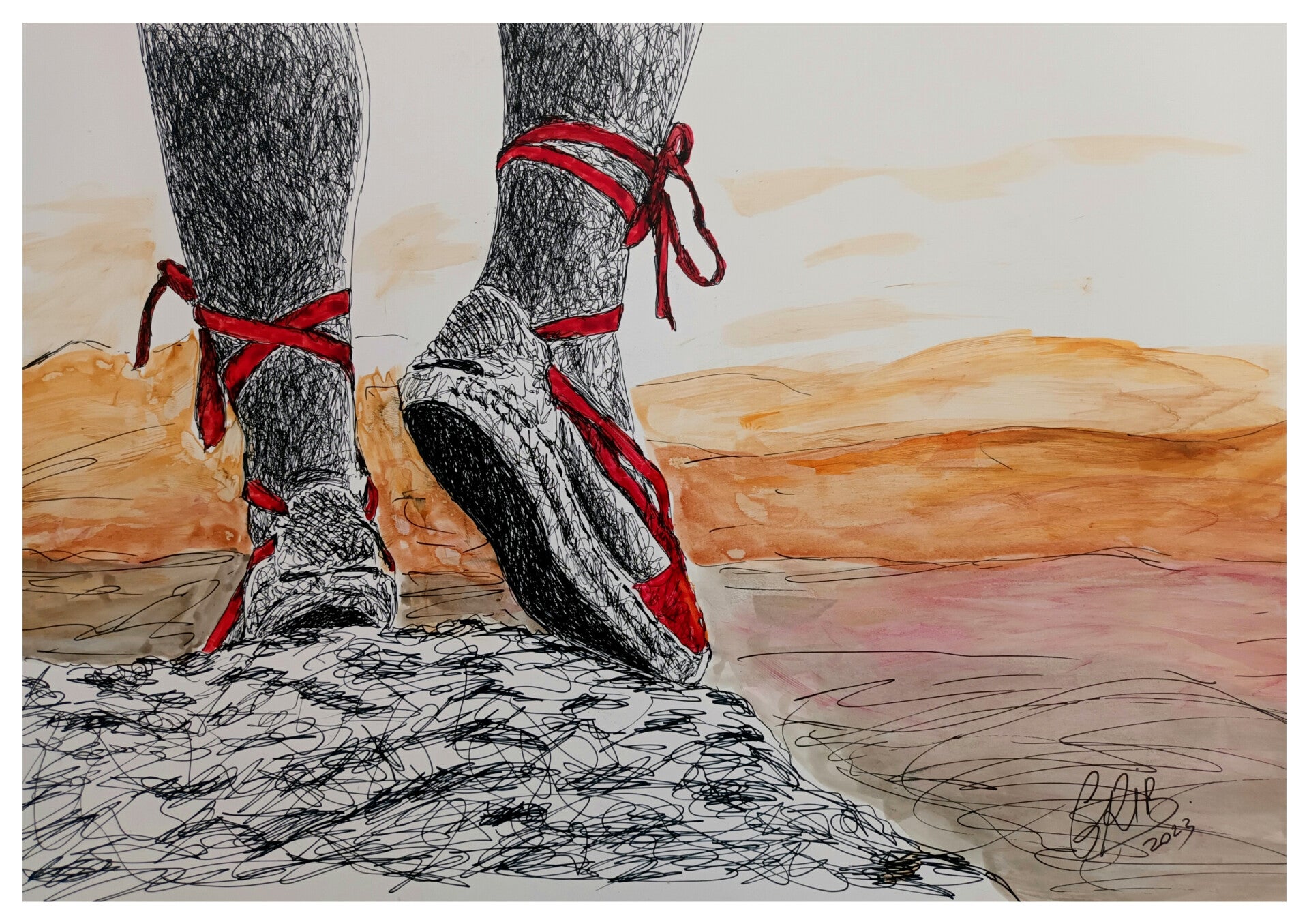 Oeuvre réalisée au stylo à encre de chine et encres de couleurs.