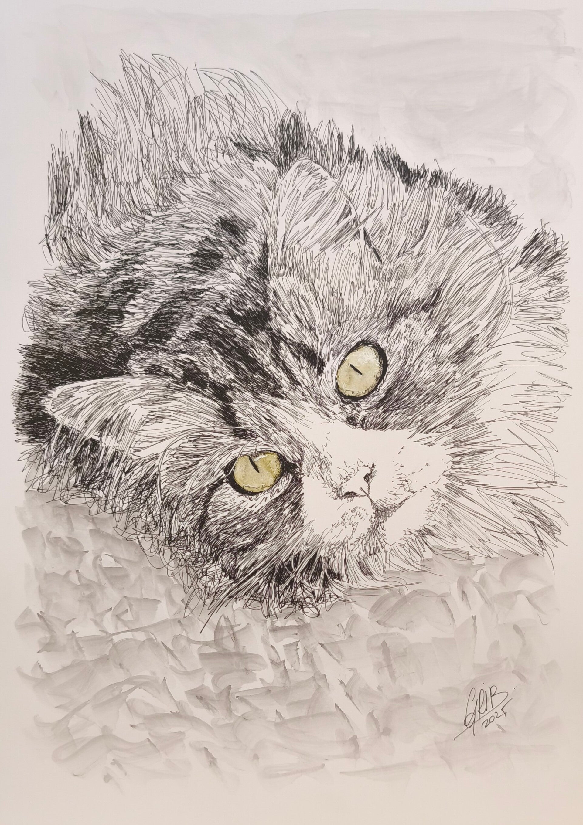 Oeuvre réalisée au stylo à encre de chine et encres de couleurs.